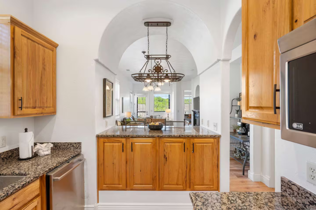 Experience the ultimate Ozarks retreat in this stunning 2BR/2BA condo, perfectly situated right next to Silver Dollar City. This bright, open-concept unit features a modern kitchen with granite countertops. Relax by the sleek electric fireplace or step onto the private balcony to enjoy breathtaking sunset views over the rolling hills. Each spacious bedroom offers a cozy sanctuary, complemented by spa-like bathrooms. Guests also enjoy access to a sparkling community pool and hot tub.Â